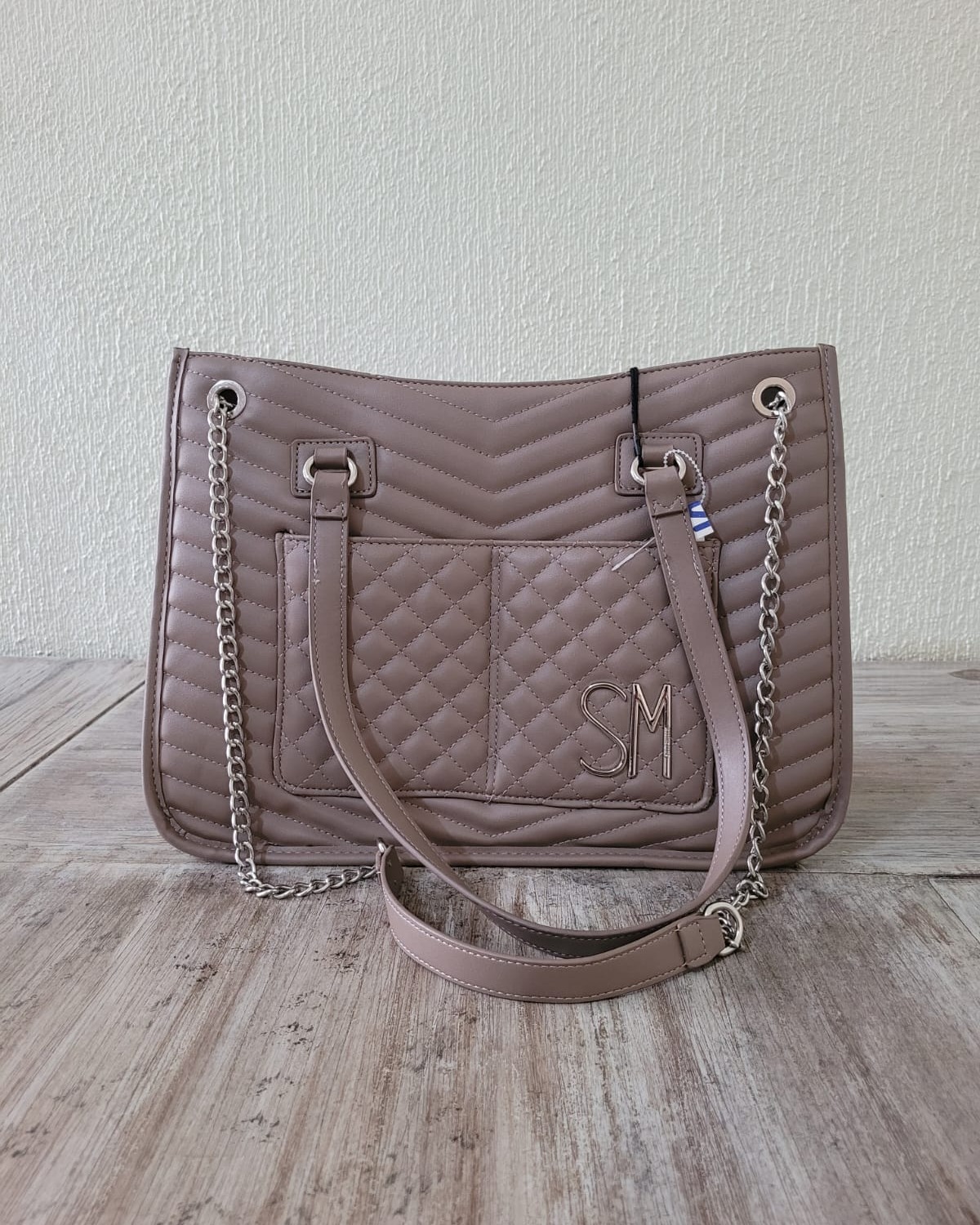 Elegancia que combina con todo ✨ Esta bolsa Steve Madden es el toque perfecto para elevar cualquier outfit: moderna, espaciosa y con detalles metálicos que hacen la diferencia.